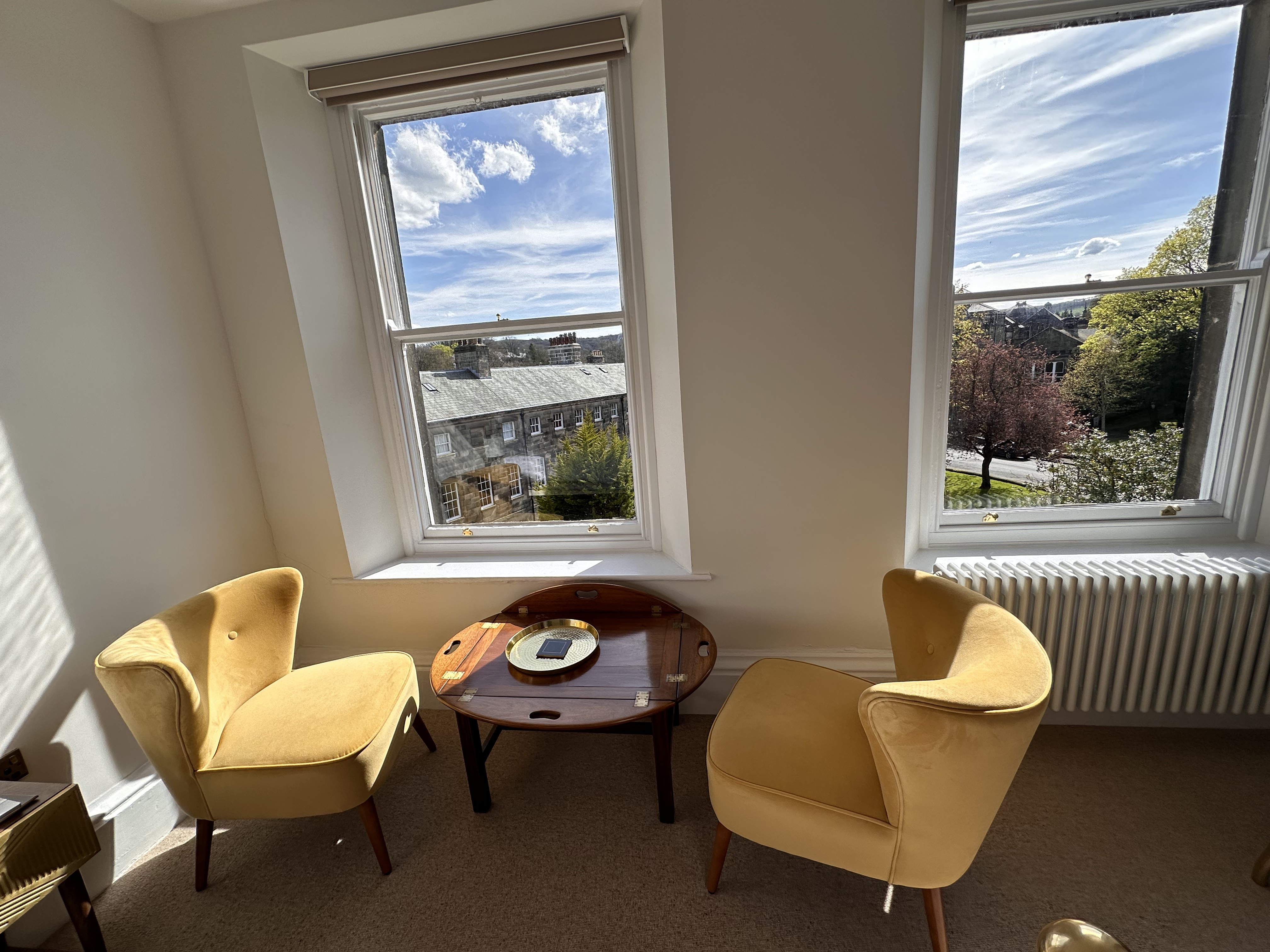 There are two chairs and table that provide a nice place to sit and enjoy and tea/coffee whilst enjoying the views.