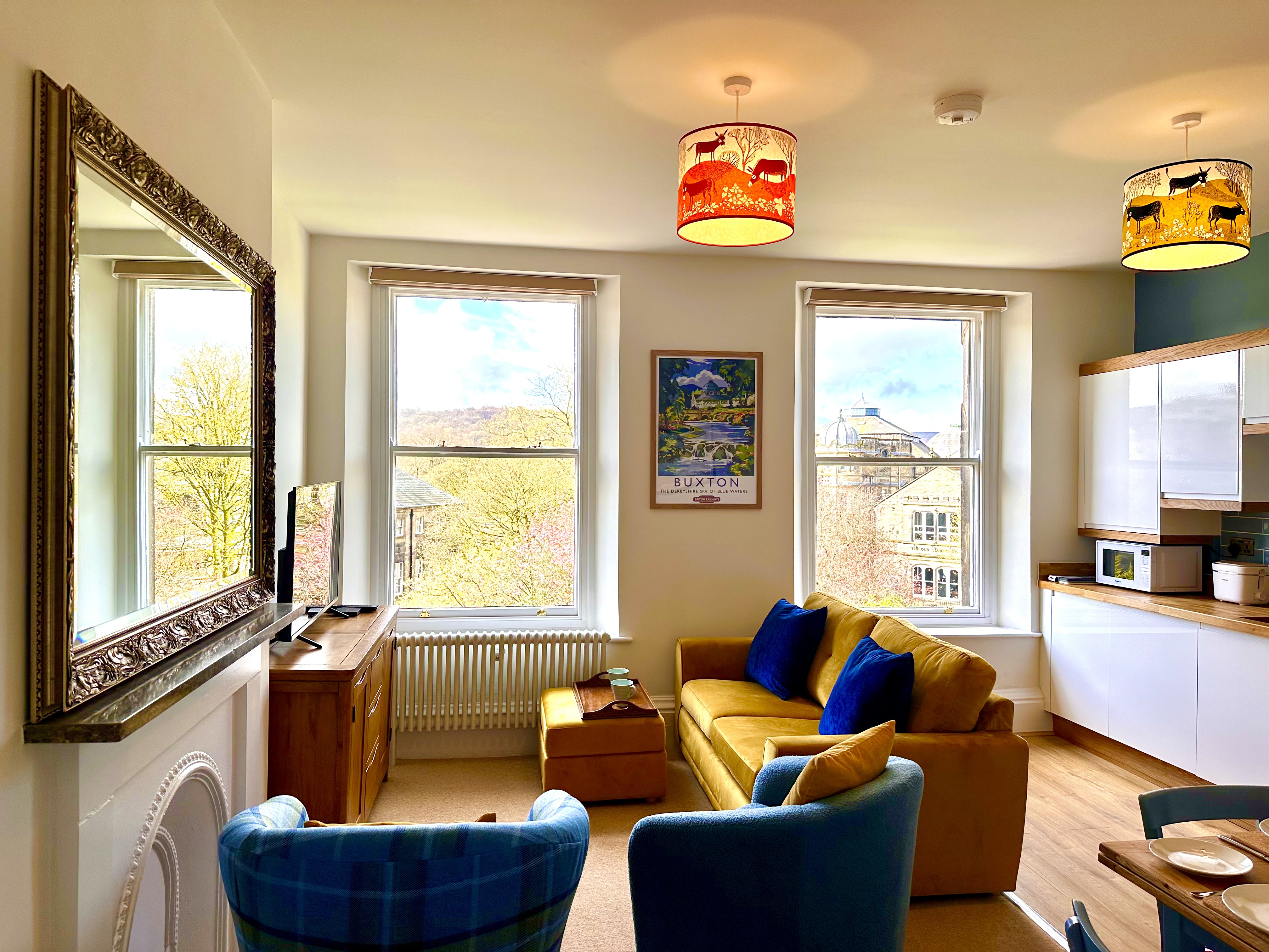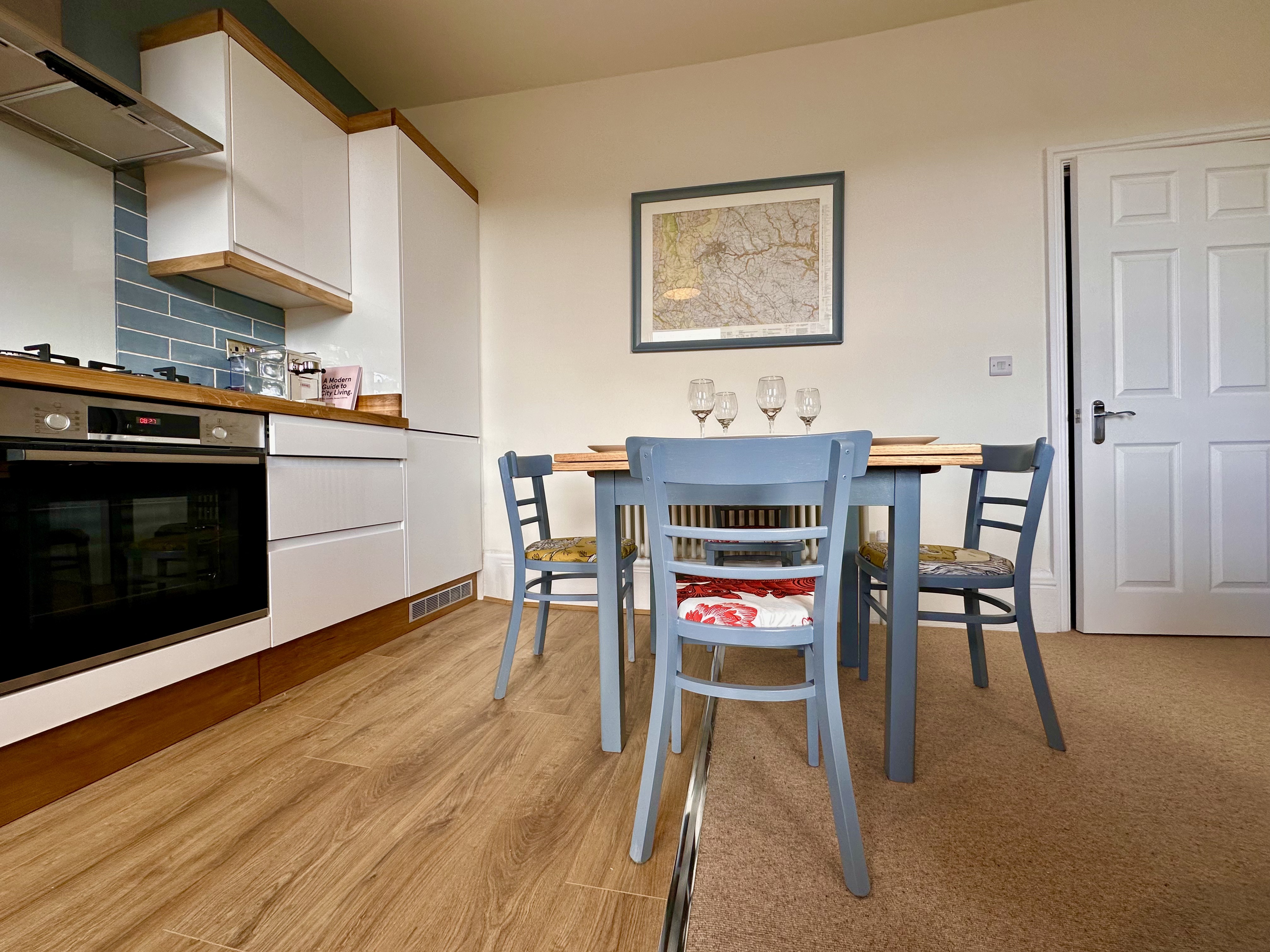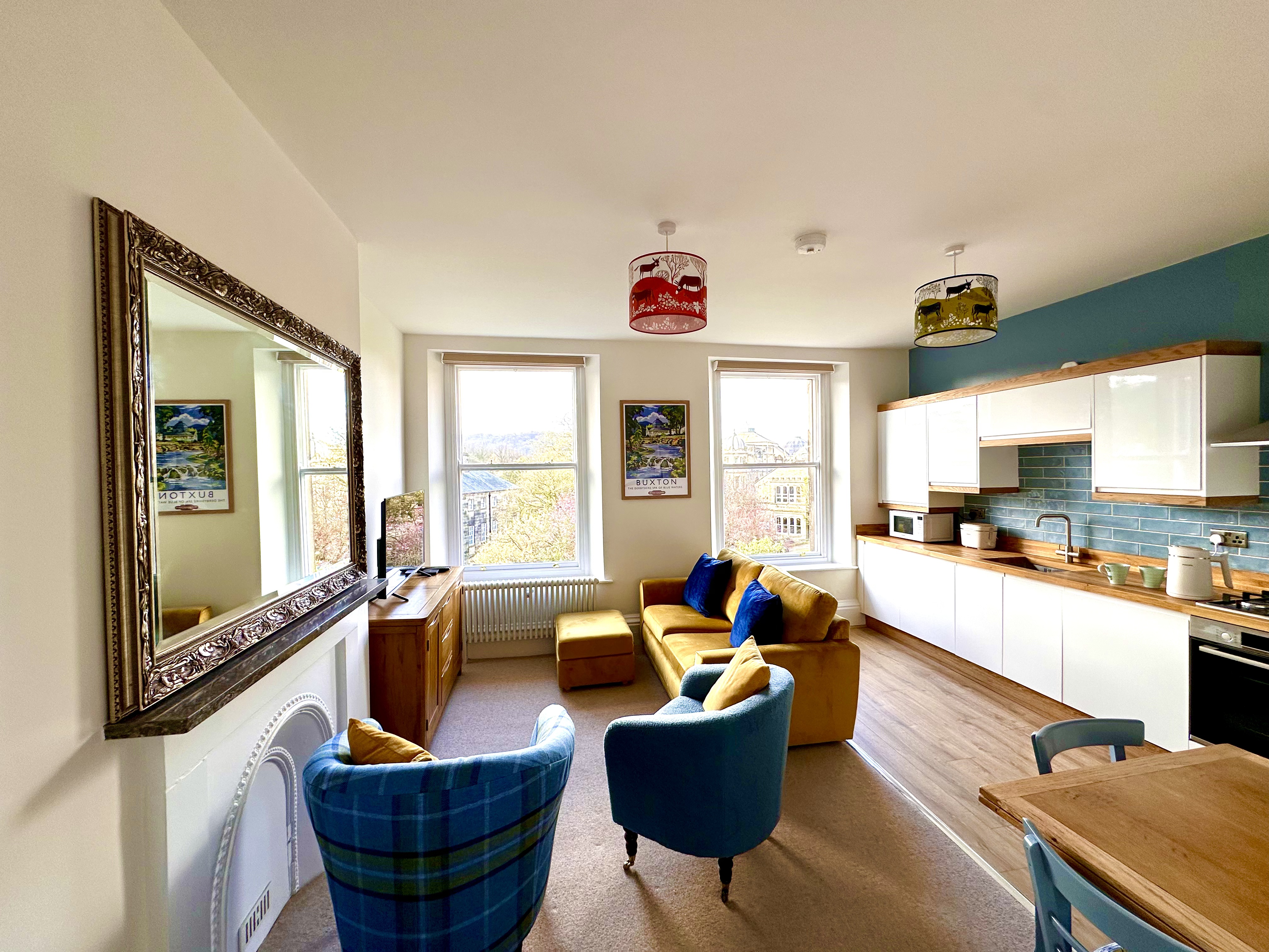 The living area offers a plush sofa and arms chairs which creates a cosy hub for you to retreat to after a busy day of roaming the town. A Smart TV provides a range of Sky channels, which will keep you well entertained should you opt for a relaxing night in. There are also a range of board games.